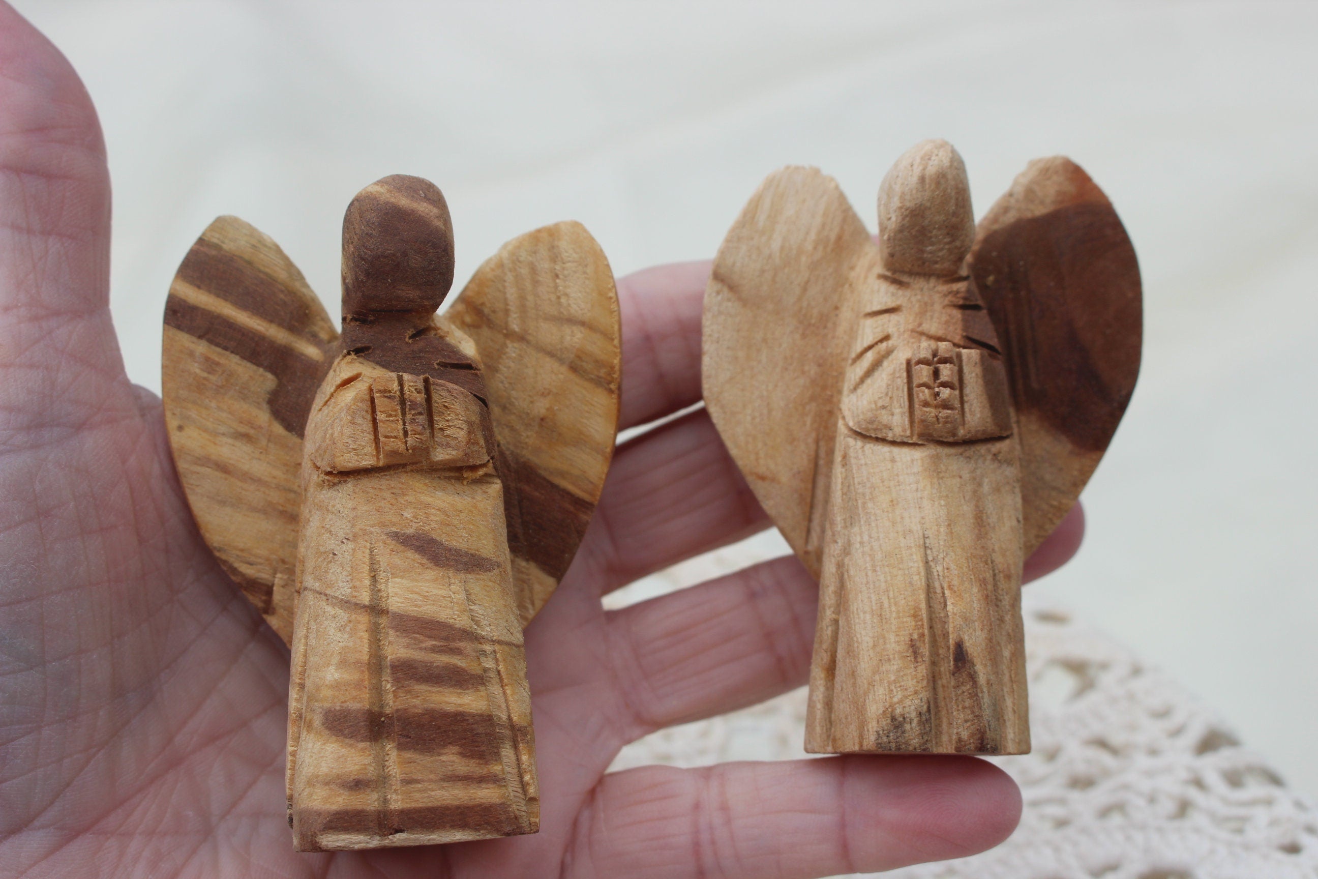Hand Carved Two In. Wooden Angel from Palo Santo Wood, Natural Aroma-Sustainably Harvested. Holy-wood.