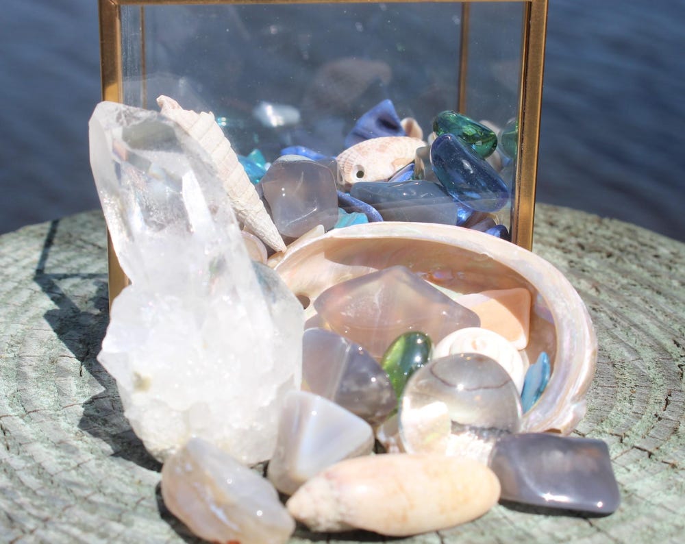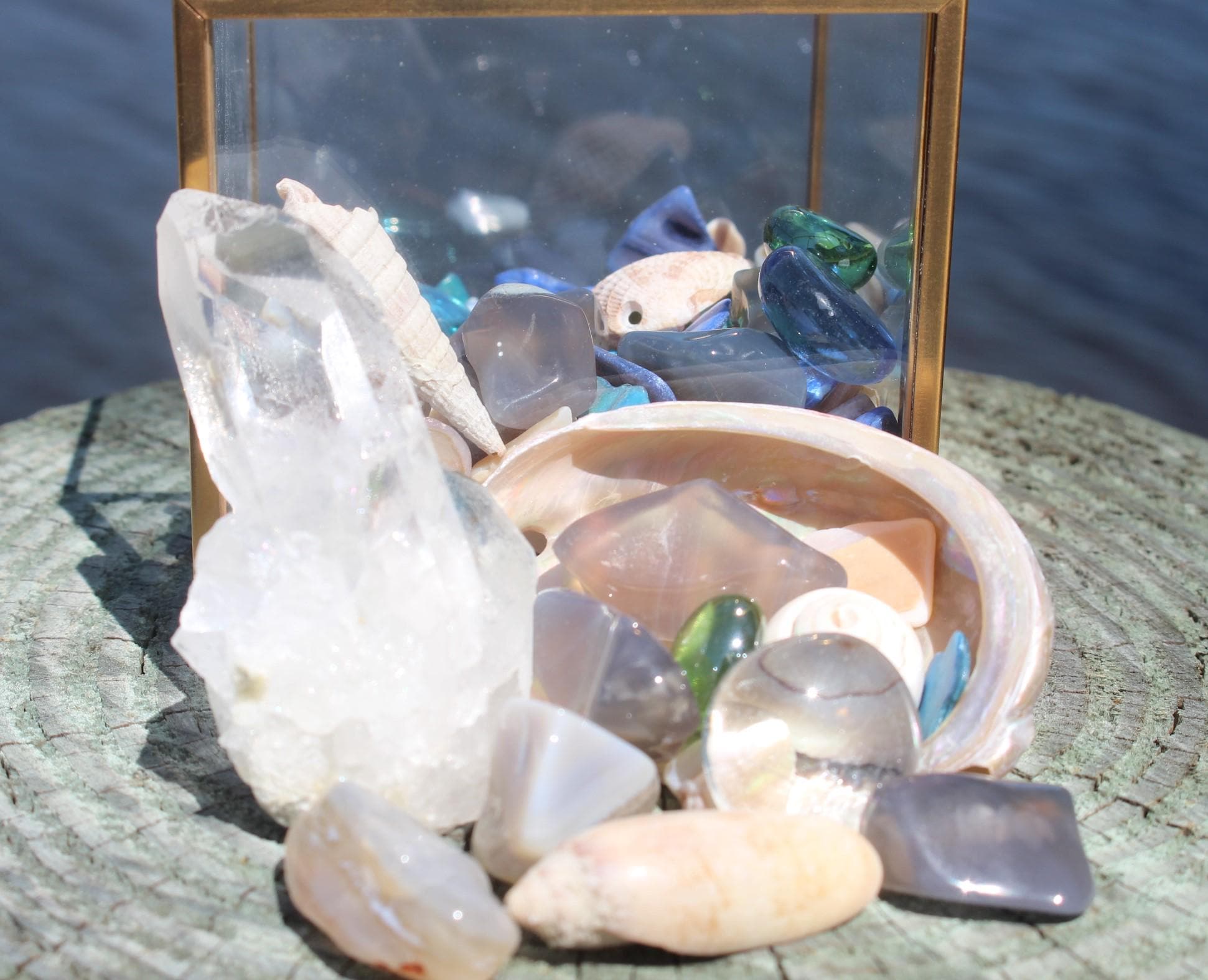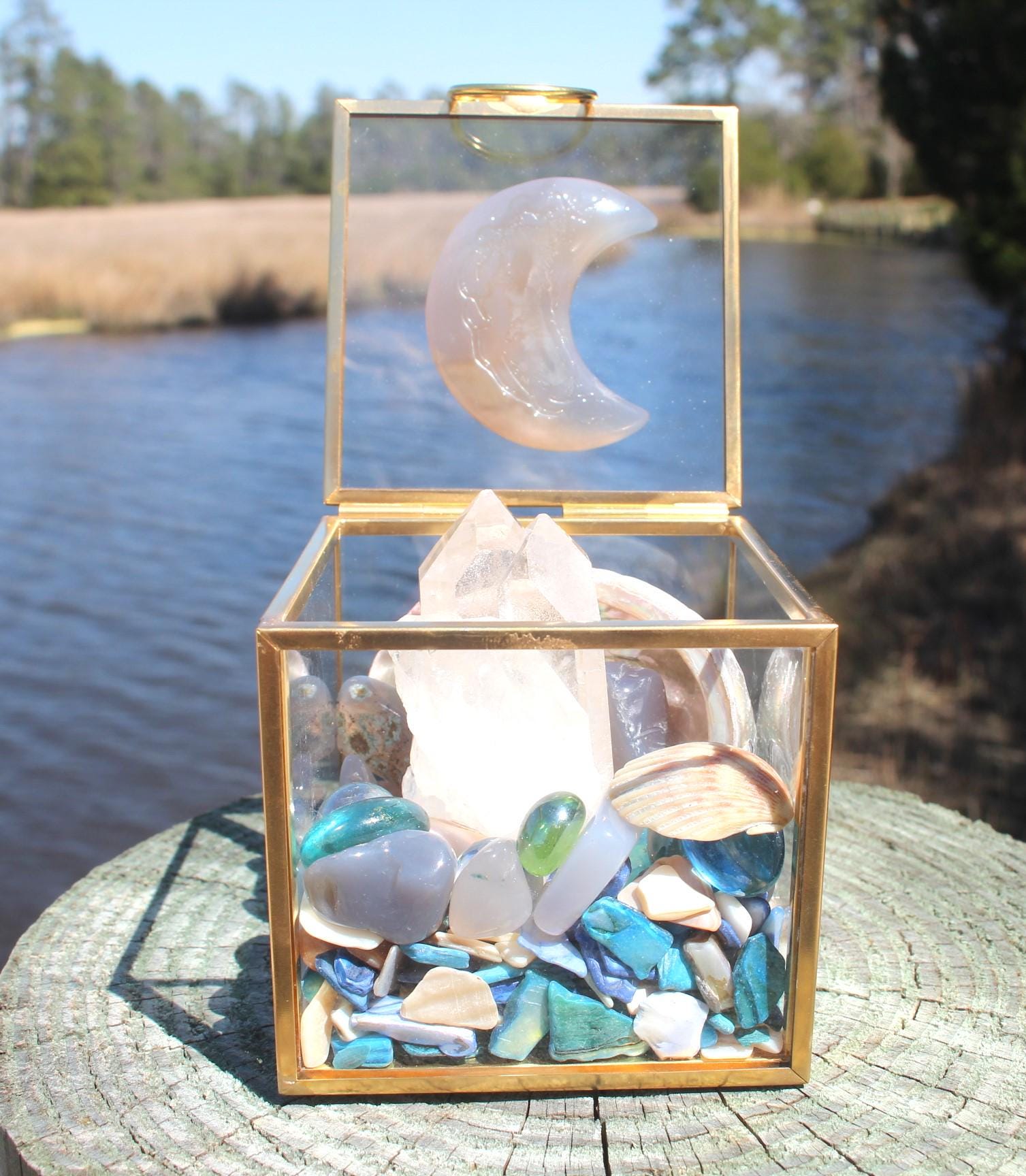 Mermaid Treasure Trove Quartz & Shell Crystal Terrarium Box, Star Agate, Crystals, Abalone Shell, Nature Relaxation Gift, Beachy Vibe Décor