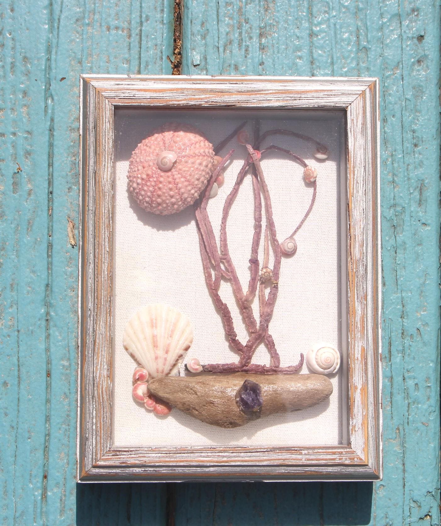 Handmade Ocean Themed Shadow Box, Shell Driftwood Sea Fan Coastal Art.