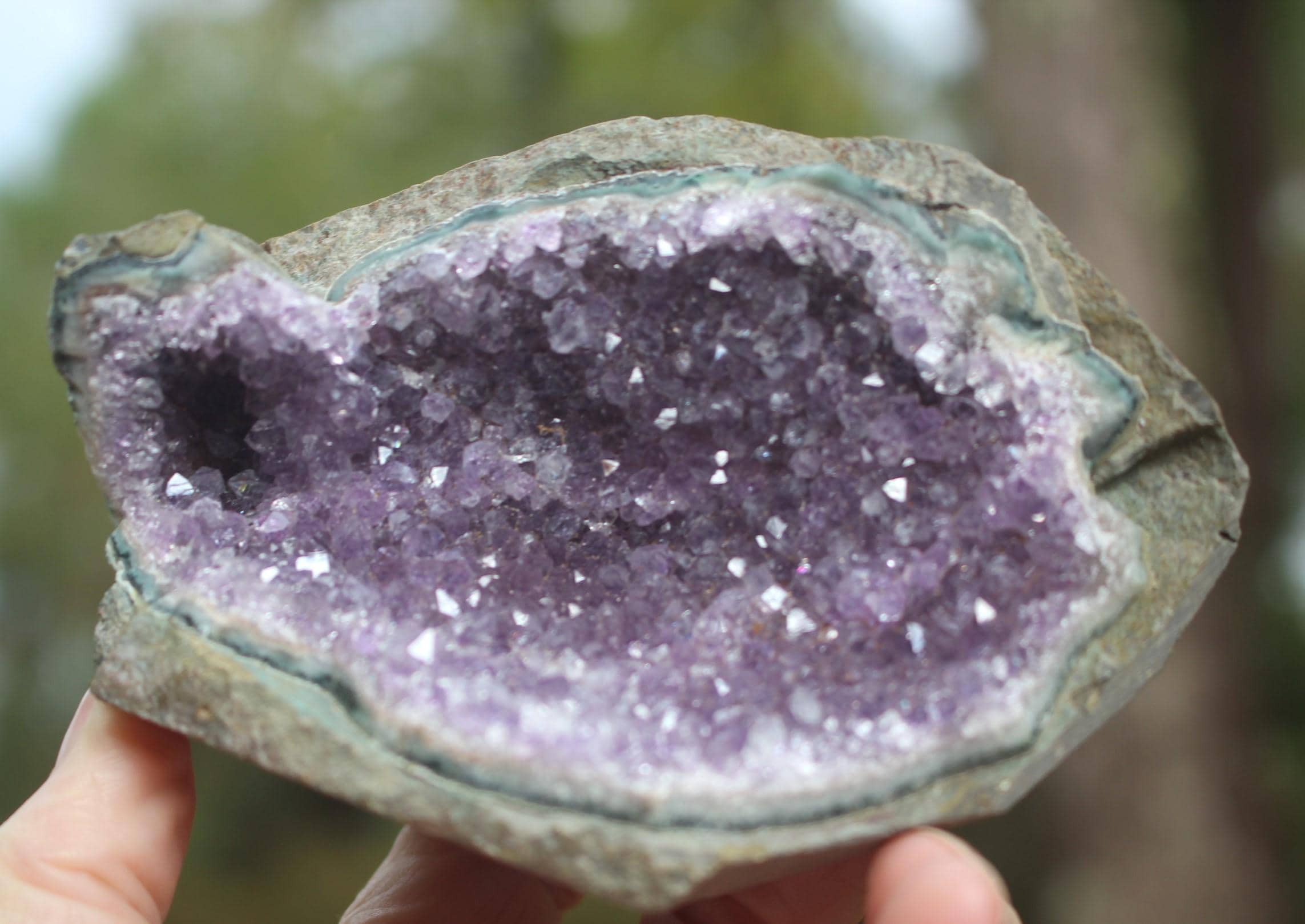 Amethyst Geode Crystal Gemstone, Purple Specimen, for Boho Décor. Yoga-Meditation Space.